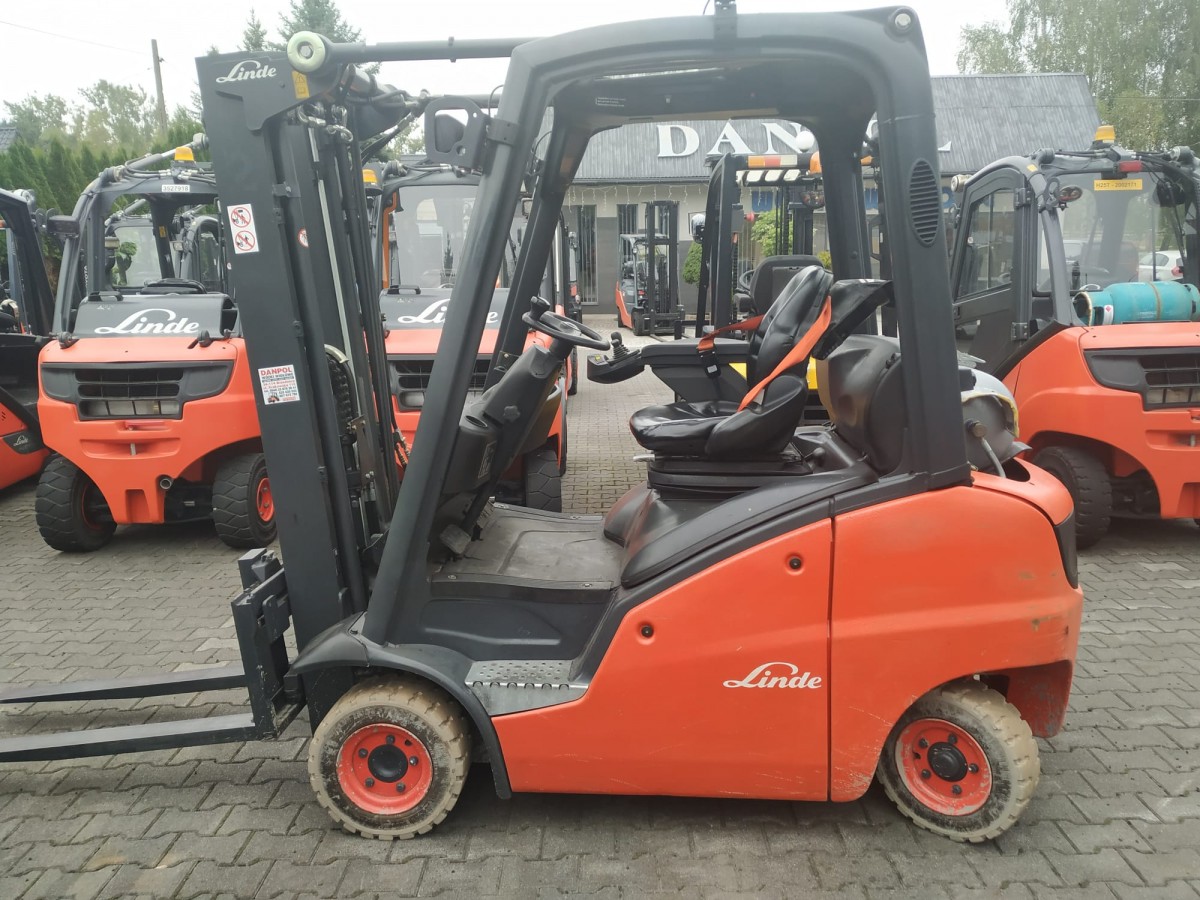 LINDE H16T (nr wewn.1297) Marka: LINDE Model: H16T Zasilanie: LPG Rok produkcji: 2014 Udźwig: 1600 kg Wysokość podnoszenia: 4625mm ( po złożeniu 2121mm) Maszt: TRIPLEX Przesuw boczny Opony super elastyczne – pełne Pełne oświetlenie drogowe