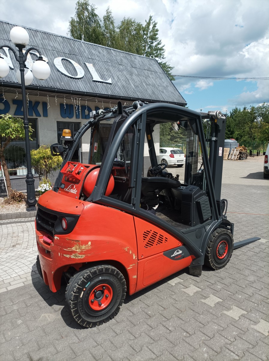 Linde H20T 2019 (nr wewn 1289) Marka: LINDE Model: H45T-02 Zasilanie: LPG 17195 mtg Silnik: VW Rok produkcji: 2019 Udźwig: 4500 kg Wysokość podnoszenia: 3200mm Maszt: DUPLEX (2521mm) Pełne oświetlenie drogowe Szyba przód – tył Opony superelastyczne